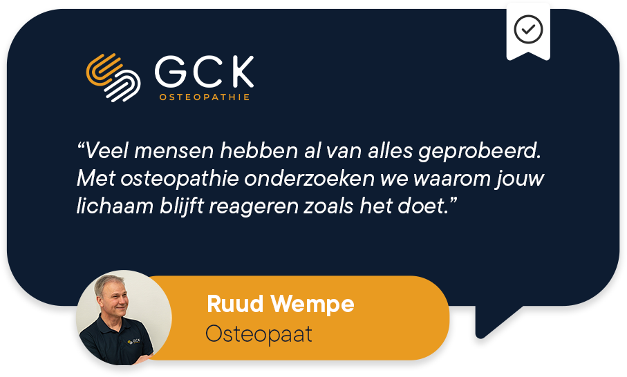 Bij GCK Osteopathie draait het niet om minuten, maar om inzicht, aandacht en herstel.