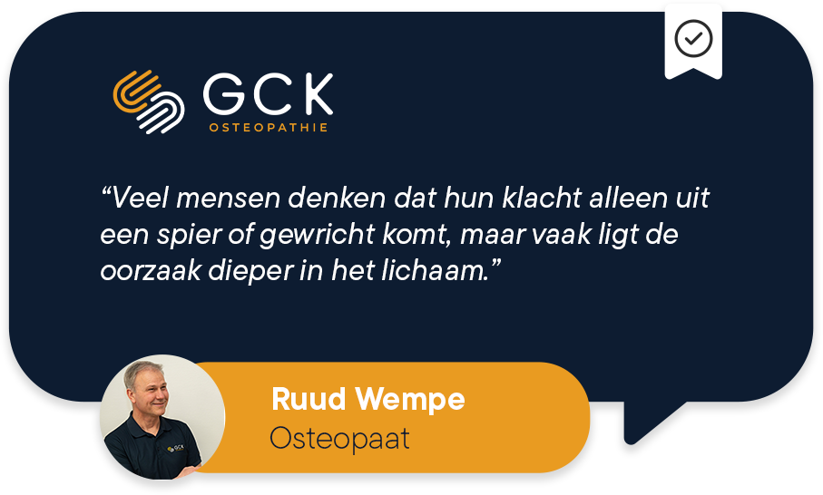 Bij GCK Osteopathie draait het niet om minuten, maar om inzicht, aandacht en herstel.
